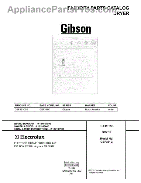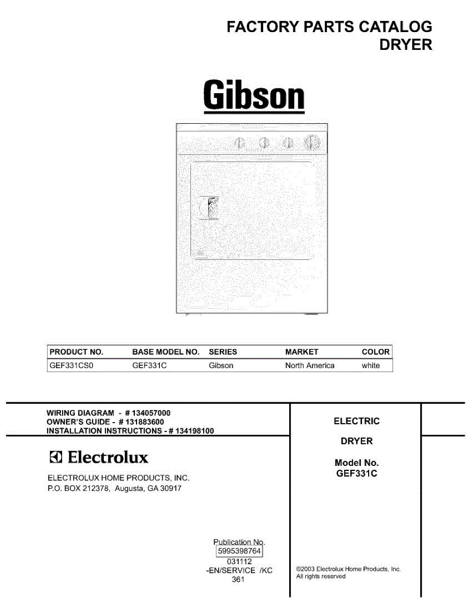 Parts for Gibson GEF331CS0: 01 - Cover Parts