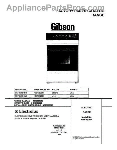 Parts for Gibson GEF352BHWB: 01 - Cover Parts