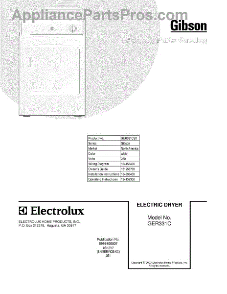 Parts for Gibson GER331CS0: 01 - Cover Parts
