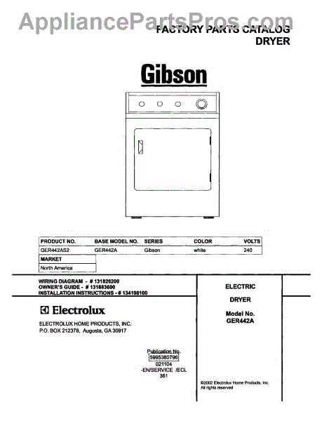 Parts for Gibson GER442AS2: 01 - Cover Parts