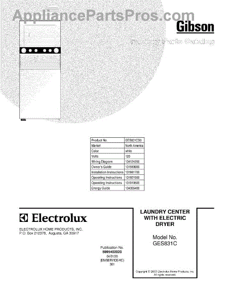 Gibson Washer Dryer Combo Parts
