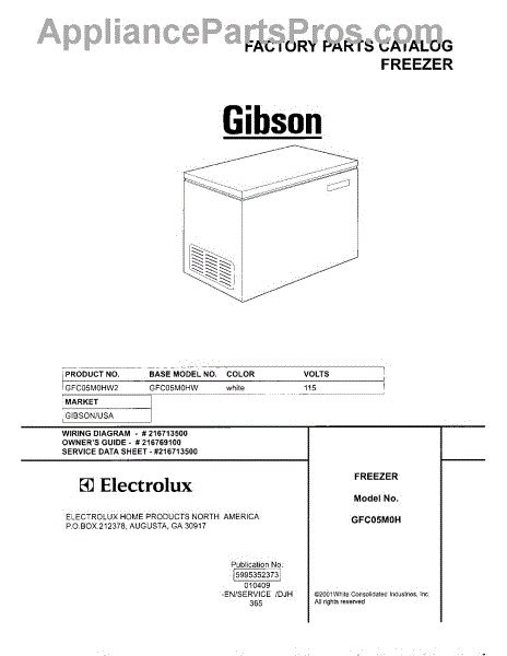 Parts for Gibson GFC05M0HW2: 01 - Cover Parts