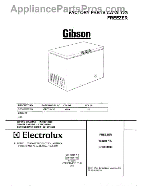 Parts for Gibson GFC05M3EW4: 01 - Cover Parts
