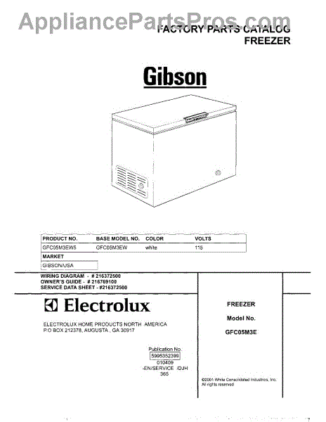 Parts for Gibson GFC05M3EW5: 01 - Cover Parts