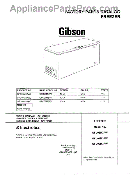 Parts for Gibson GFC07M3AW0: 01 - Cover Parts