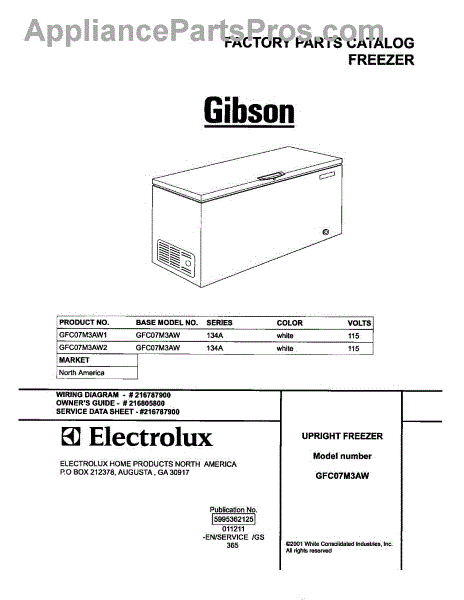 Parts for Gibson GFC07M3AW2: 01 - Cover Parts