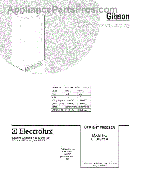 Parts for Gibson GFU09M2AW6: 01 - Cover Parts
