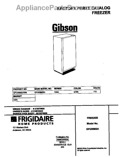 Parts for Gibson GFU09M2HW4: Cover Parts