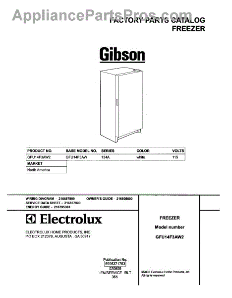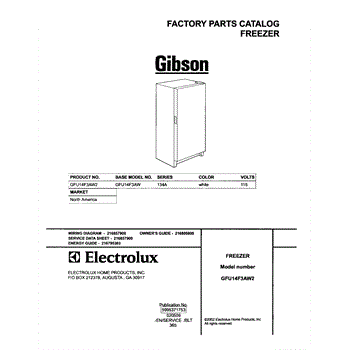 Parts for Gibson GFU14F3AW2: 01 - Cover Parts