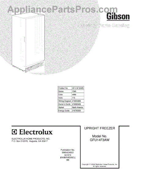 Parts for Gibson GFU14F3AW5: 01 - Cover Parts