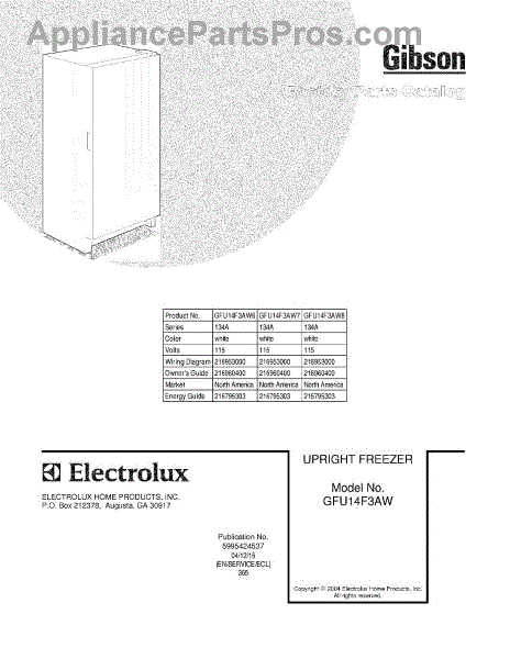 Parts for Gibson GFU14F3AW7: 01 - Cover Parts