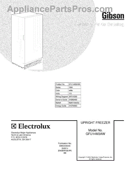 Parts for Gibson GFU14M3AWA: 01 - Cover Parts