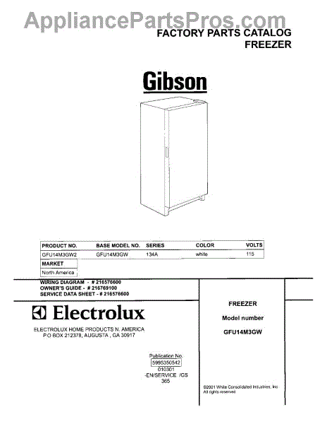 Parts for Gibson GFU14M3GW2: 01 - Cover Parts