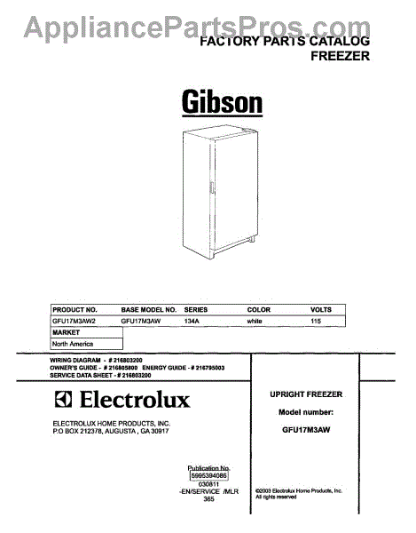Parts for Gibson GFU17M3AW2: 01 - Cover Parts