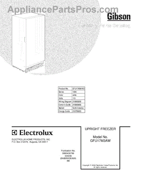 Parts for Gibson GFU17M3AW3: 01 - Cover Parts