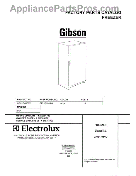 Parts for Gibson GFU17M4GW2: 01 - Cover Parts