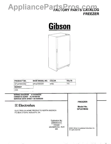 Parts for Gibson GFU21M4GW2: 01 - Cover Parts
