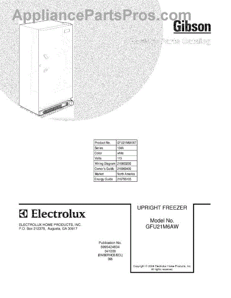 Parts for Gibson GFU21M6AW7: 01 - Cover Parts