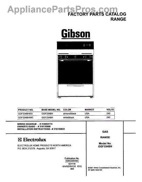 Parts for Gibson GGF334BHWD: 01 - Cover Parts