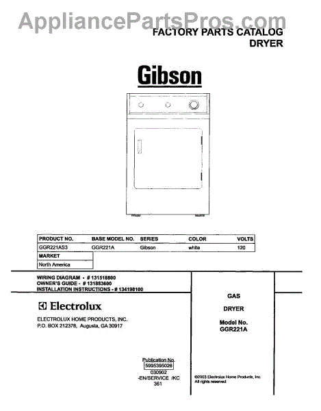 Parts for Gibson GGR221AS3: 01 - Cover Parts
