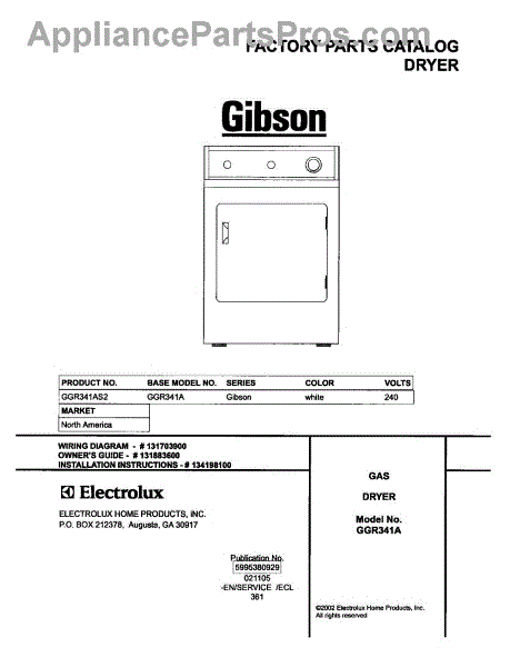 Parts for Gibson GGR341AS2: 01 - Cover Parts