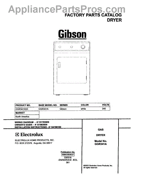 Parts for Gibson GGR341AS3: 01 - Cover Parts