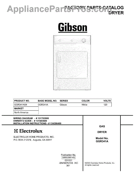 Parts for Gibson GGR341AS4: 01 - Cover Parts