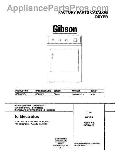 Parts for Gibson GGR442AS4: 01 - Cover Parts
