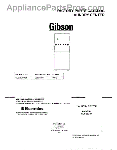 Parts for Gibson GLSE62RHS1: 01 - Cover Parts