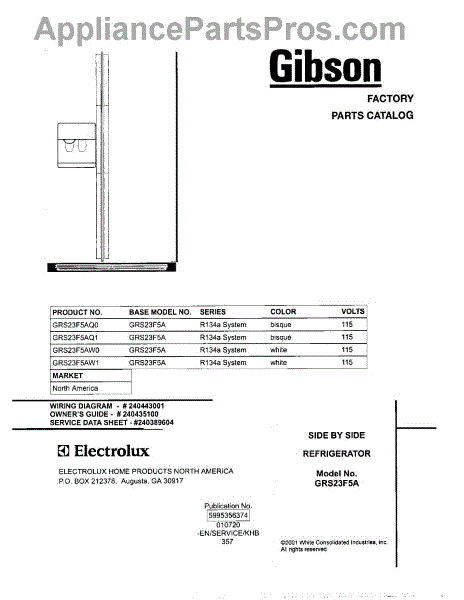 Parts for Gibson GRS23F5AQ0: 01 - Cover Parts