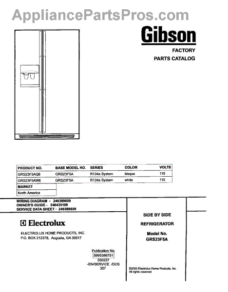 Parts for Gibson GRS23F5AQ6: 01 - Cover Parts