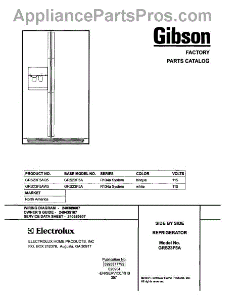 Parts for Gibson GRS23F5AW5: 01 - Cover Parts