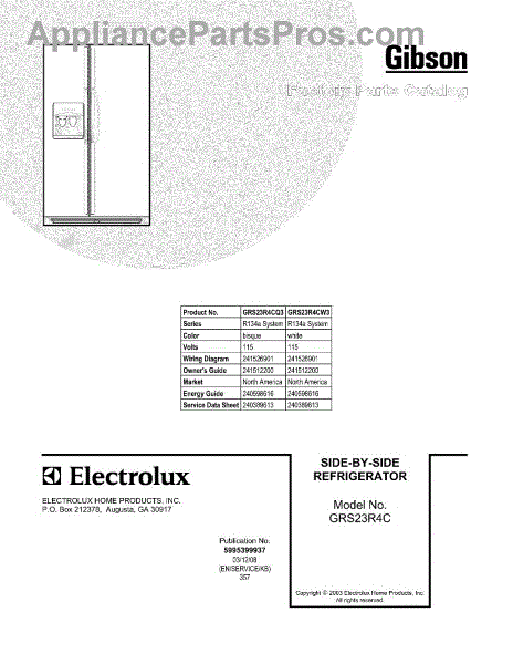 Parts for Gibson GRS23R4CQ3: 01 - Cover Parts