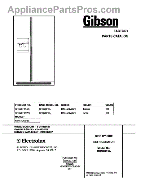 Parts for Gibson GRS26F5AW5: 01 - Cover Parts