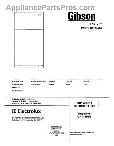 Parts for Gibson GRT15B3BW0: 01 - Cover Parts