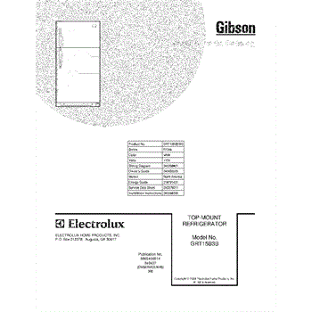 Parts for Gibson GRT15B3BW3: 01 - Cover Parts