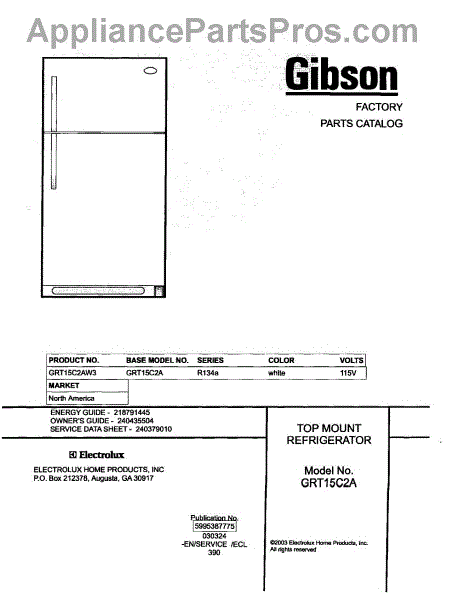 Parts for Gibson GRT15C2AW3: 01 - Cover Parts
