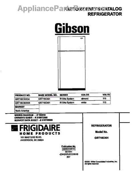 Parts for Gibson GRT16CNHW4: Cover Parts