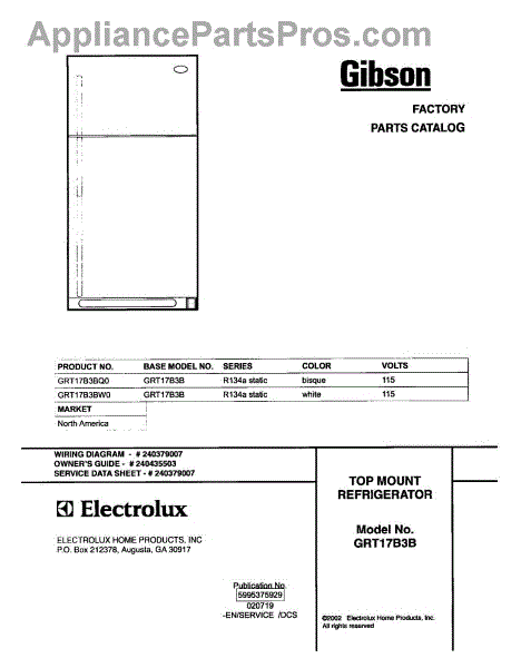 Parts for Gibson GRT17B3BQ0: 01 - Cover Parts
