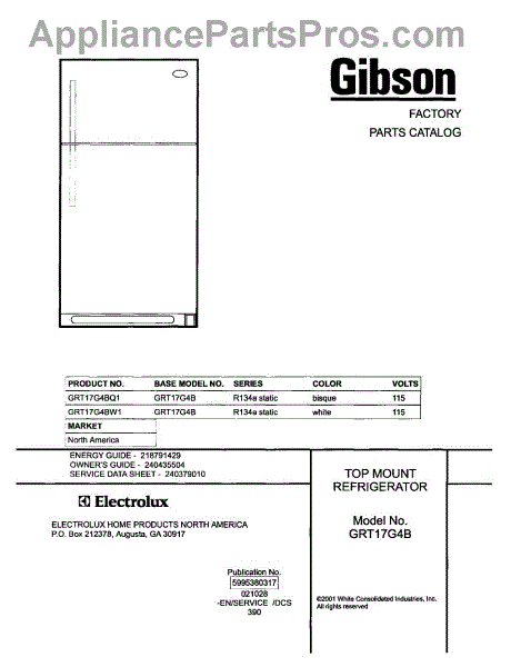 Parts for Gibson GRT17G4BW1: 01 - Cover Parts