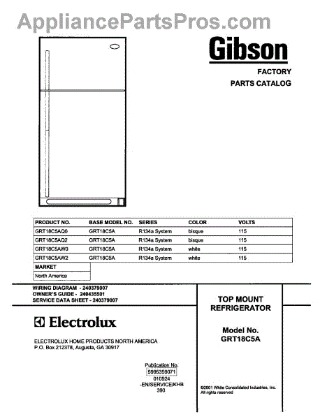 Parts for Gibson GRT18C5AW0: 01 - Cover Parts