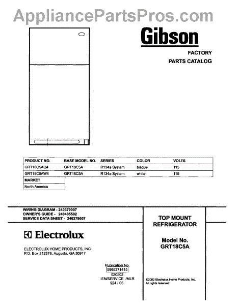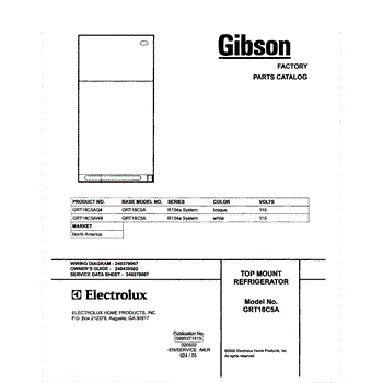 Parts for Gibson GRT18C5AW4: 01 - Cover Parts