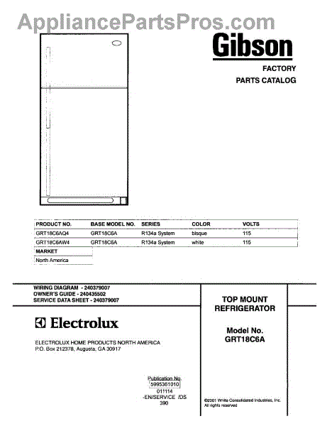 Parts for Gibson GRT18C6AQ4: 01 - Cover Parts
