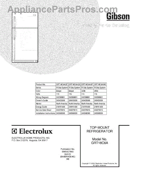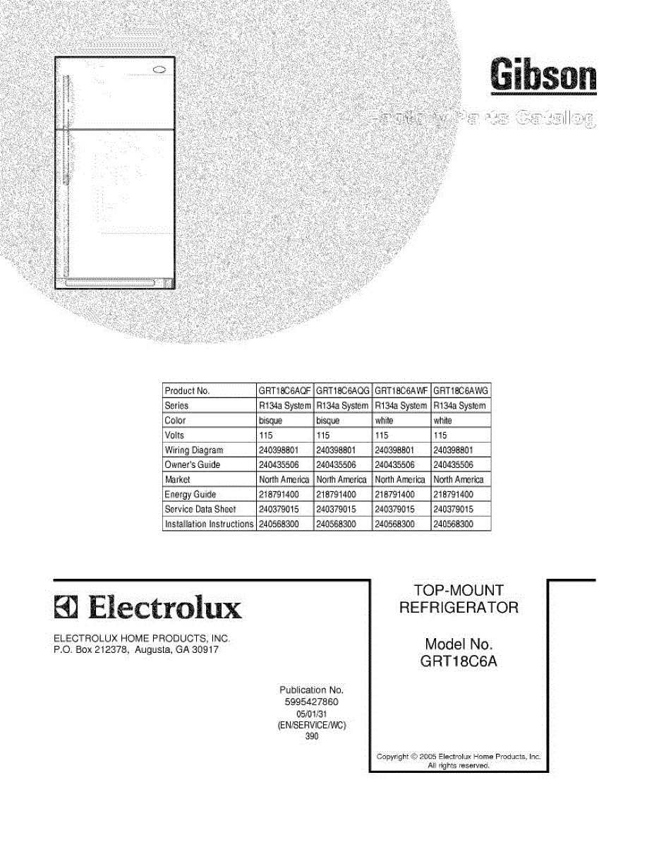 Parts for Gibson GRT18C6AWG: 01 - Cover Parts