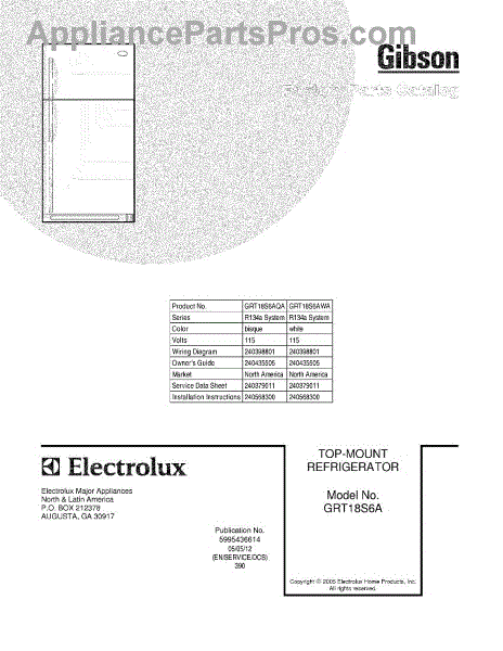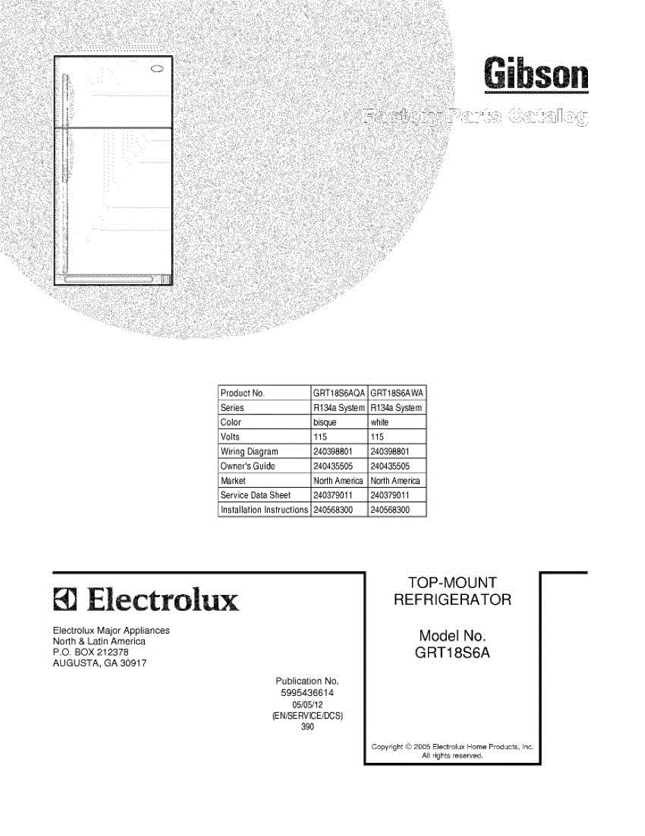 Parts for Gibson GRT18S6AQA: 01 - Cover Parts