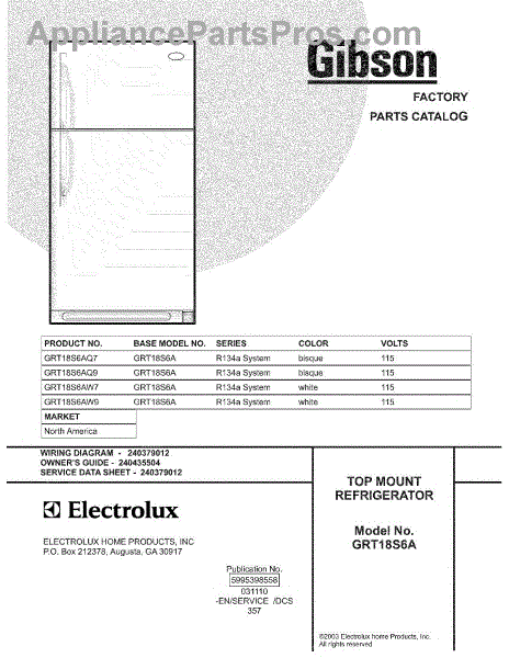 Parts for Gibson GRT18S6AW9: 01 - Cover Parts