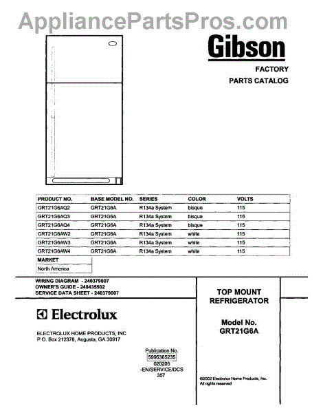 Parts for Gibson GRT21G6AQ2: 01 - Cover Parts