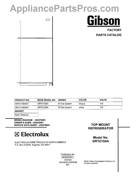 Parts for Gibson GRT21G6AW1: 01 - Cover Parts