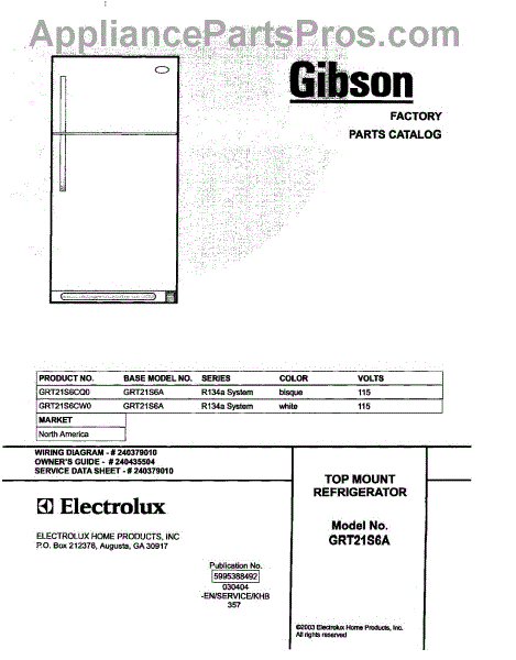 Parts for Gibson GRT21S6CQ0: 01 - Cover Parts