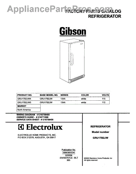 Parts for Gibson GRU17B2JW5: 01 - Cover Parts